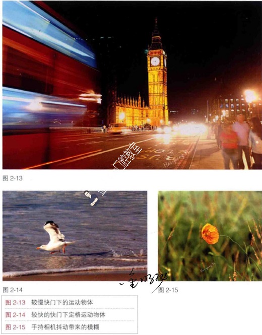 另外,手持相机拍摄时,相机总是有一定的抖动,这使得被摄目标相对相机总是移动的,所以手持拍摄时,快门速度过慢会导致容易照“花”(图2-15)。为了防止抖动出现的模糊,手持拍摄时,一般快门速度数值不能低于镜头焦距的数值。使用100mm镜头手持拍摄时,快门速度至少要大于100。
