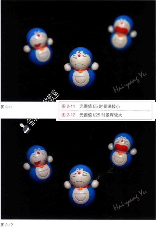 光圈的最大特点在于它会影响“景深”。景深是指当我们使用相机对目标对焦后,之后目标前后一段范围内的物体能清楚地成像。景深的大小与镜头焦距、相机和拍摄目标距离、光圈大小有关。其他条件相同时,光圈越大,景深就会越小(图2-11,图2-12)。景深在口内摄影时变得十分重要。由于口内摄影使用长焦镜头,并且离拍摄物体很近,因此,在这种情况下,正面照牙列时常常会出现只有中切牙清楚,到尖牙、后牙的位置就模糊一片了,所以在口内摄影时,为了获得足够的景深,我们会需要较大的光圈值(也就是尽量缩小光圈)。